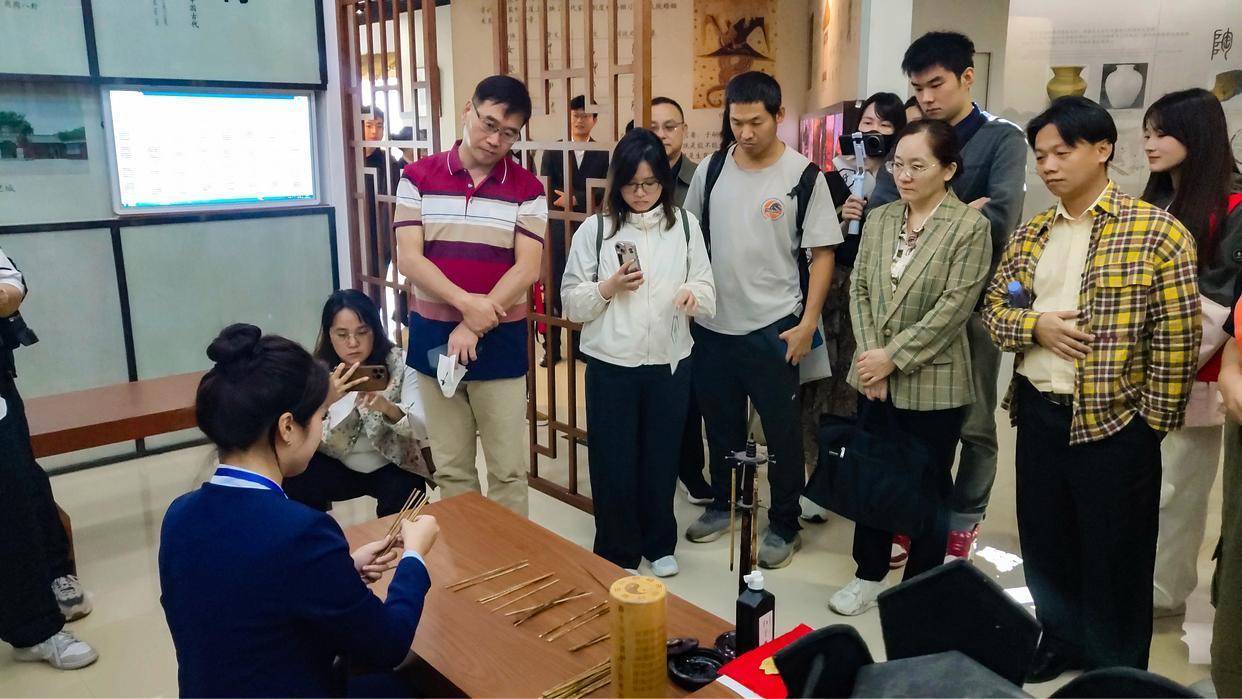 大河网讯 一片甲骨,连接两岸深情。9月20日上午,参加2025海峡两岸周易文化交流活动的台湾专家学者及青年走进安阳师范学院,沉浸式参与甲骨文体验活动。